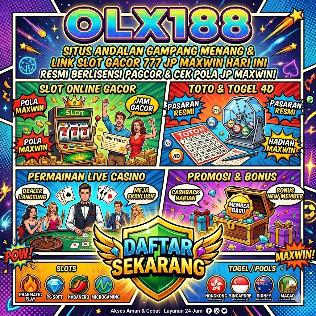 OLX188 adalah situs andalan gampang menang dan link slot gacor 777 yang menjamin peluang JP Maxwin tertinggi hari ini dengan sistem keamanan server paling stabil. Nikmati ribuan game slot populer dengan RTP live akurat dan jaminan WD besar pasti cair kilat tanpa potongan. Daftar sekarang melalui link resmi anti-blokir untuk meraih kemenangan fantastis Anda!
